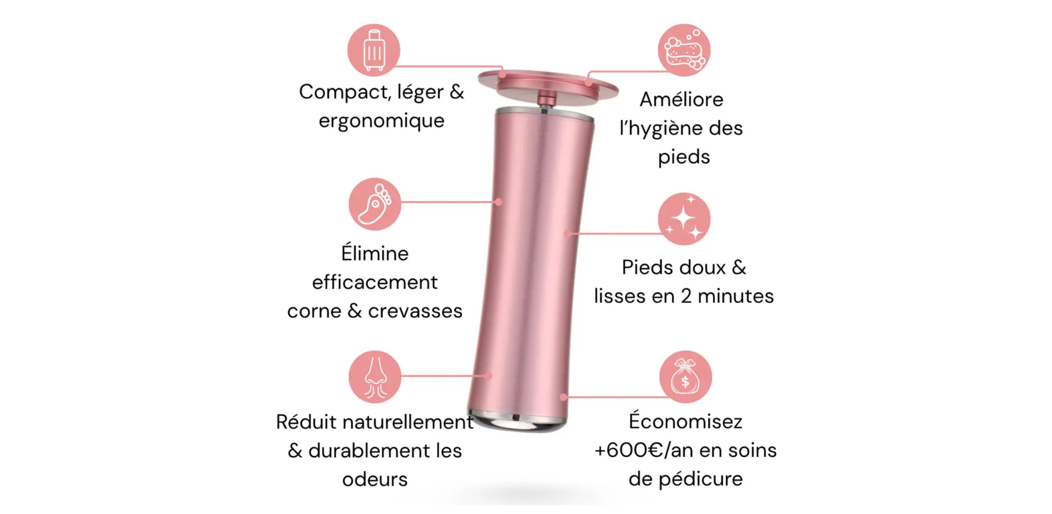 Sensyl utilise un moteur puissant (0–800 tr/min) et une rotation à 360° pour éliminer en douceur les callosités et peaux mortes sans blesser vos pieds.